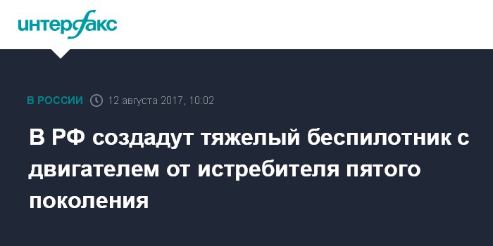 Москва. 12 августа. INTERFAX.RU - В России работают над созданием беспилотника, который получит перспективный двигатель от истребителя пятого поколения (фронтовой авиакомплекс фронтовой авиации - ПАК ФА), сообщил информированный собеседник "Интерфакса" в оборонно-промышленном комплексе