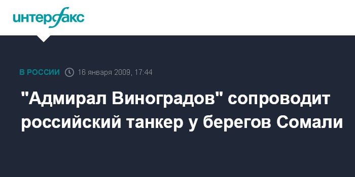 Мурманск. 16 января. INTERFAX.RU - Большой противолодочный корабль (БПК) Тихоокеанского флота "Адмирал Виноградов", приступивший к патрулированию океанской зоны у берегов Сомали, поведет из Аравийского моря до входа в Баб-эль-Мандебский пролив танкер "Hадежда", сообщили "Интерфаксу" в Мурманском морском пароходстве.