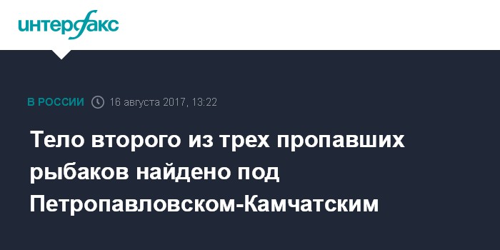 Москва. 16 августа. INTERFAX.RU - Обнаружено тело второго из трех пропавших рыбаков, которые еще 9 августа вышли на катере в Авачинскую бухту, и пропали. Об этом сообщили в среду агентству "Интерфакс" в УМВД России по Камчатскому краю.