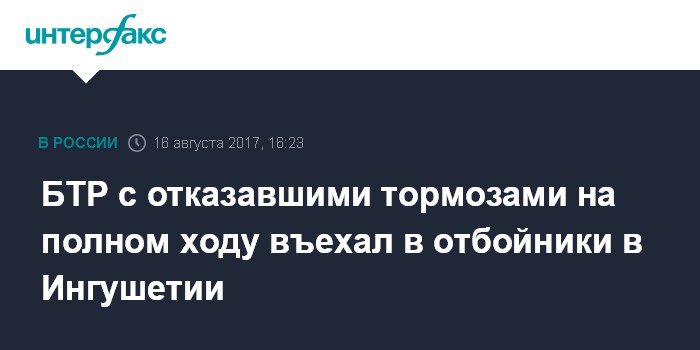БТР с отказавшими тормозами на полном ходу въехал в отбойники в Ингушетии