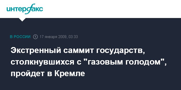 С инициативой созыва этой экстренной встречи, призванной "снять проблему газового голода" в Европе, Д.Медведев выступил всего два дня назад во время беседы с премьерами Болгарии, Молдавии и Словакии - стран, столкнувшихся с острой нехваткой российского газа, который Украина отказывается пропускать через свою газотранспортную систему (ГТС). Киев объясняет отказ необходимостью переориентации газовых потоков, что оставит без газа ряд регионов самой Украины.