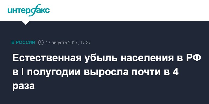 Таким образом, за I полугодие 2017 года была зафиксирована естественная убыль населения на 119,4 тыс. человек (за I полугодие 2016 года естественная убыль населения составила 32,2 тыс. человек). Миграционный прирост на 85,7% компенсировал численные потери населения.