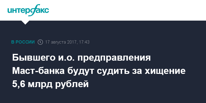 Бывшего и.о. предправления Маст-банка будут судить за хищение 5,6 млрд рублей