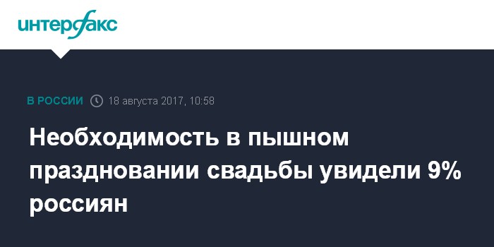 Необходимость в пышном праздновании свадьбы увидели 9% россиян