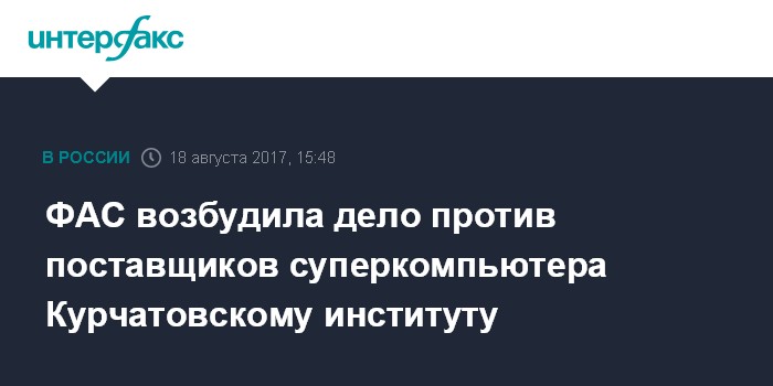 ФАС возбудила дело против поставщиков суперкомпьютера Курчатовскому институту