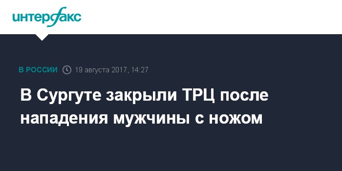 Москва. 19 августа. INTERFAX.RU - Торгово-развлекательный центр (ТРЦ) "Сити Молл" в Сургуте, неподалеку от которого мужчина с ножом напал на прохожих, временно закрыт, сообщили "Интерфаксу" в администрации учреждения.