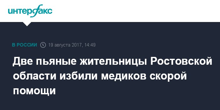 Москва. 19 августа. INTERFAX.RU - Полицейские в городе Шахты (Ростовская область) задержали двух женщин в состоянии алкогольного опьянения, которые напали на сотрудников скорой помощи, сообщили в субботу "Интерфаксу" в пресс-службе ГУ МВД России по региону.