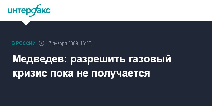 Москва. 17 января. INTERFAX.RU - Все предпринимаемые усилия для разрешения газового криза результатов пока не принесли, заявил президент РФ Дмитрий Медведев на газовом саммите в субботу в Москве