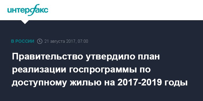 Правительство утвердило план реализации госпрограммы по доступному жилью на 2017-2019 годы