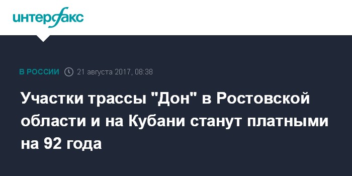 Участки трассы "Дон" в Ростовской области и на Кубани станут платными на 92 года