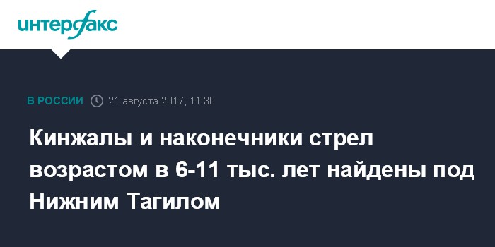 Кинжалы и наконечники стрел возрастом в 6-11 тыс. лет найдены под Нижним Тагилом