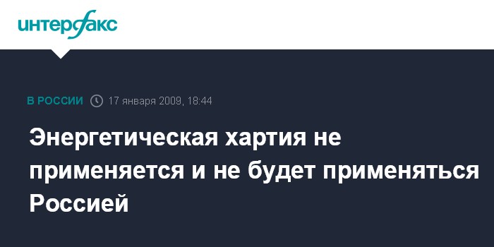 Энергетическая хартия не применяется и не будет применяться Россией