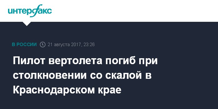 Москва. 21 августа. INTERFAX.RU - По предварительным данным в Краснодарском крае в Анапском районе возле населенного пункта Малый Утриш при столкновении со скалой вертолета Robinson R-66, совершавшего перелет "Анапа - Абрау-Дюрсо" погиб пилот, сообщил источник в экстренных службах региона.
