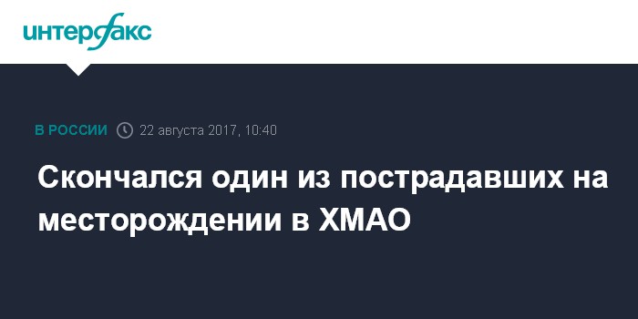Москва. 22 августа. INTERFAX.RU - Один из пострадавших при возгорании на Ван-Еганском месторождении в Ханты-Мансийском автономном округе скончался, сообщает официальный штаб регионального правительства.