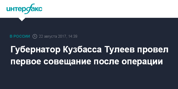 12 августа кемеровский губернатор Тулеев вернулся в регион из Москвы, где проходил курс реабилитации в ЦКБ управления делами президента РФ.