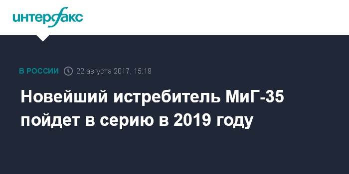 Москва. 22 августа. INTERFAX.RU - Серийное производство новейшего истребителя МиГ-35 начнется с 2019 года, сообщил глава Российской самолетостроительной корпорации "МиГ" Илья Тарасенко.