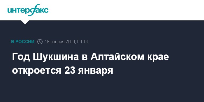 Барнаул. 18 января. ИНТЕРФАКС-СИБИРЬ - Мероприятия в рамках Года Василия Шукшина, объявленного в Алтайском крае в 2009 году, начнутся в регионе на следующей неделе.
