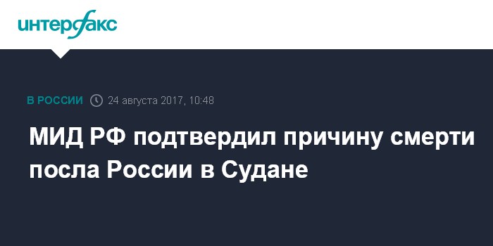 Вечером 23 августа СМИ сообщили о том, что посол России в Судане был обнаружен мертвым в своей резиденции в Хартуме
