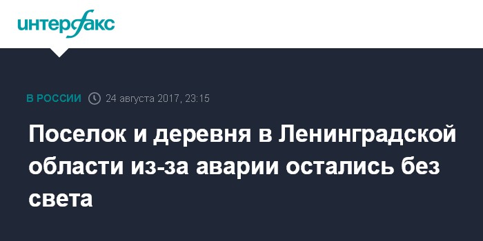 Москва. 24 августа. INTERFAX.RU - Почти 8,5 тыс. человек остались без света в двух населенных пунктах Ленинградской области из-за аварийного отключения энергии, говорится в сообщении на сайте регионального Главного управления МЧС.