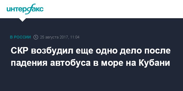 Москва. 25 августа. INTERFAX.RU - Следственный комитет России дал дополнительную квалификацию дорожно-транспортному происшествию, связанному с падением автобуса с людьми в море на Кубани.