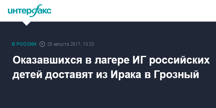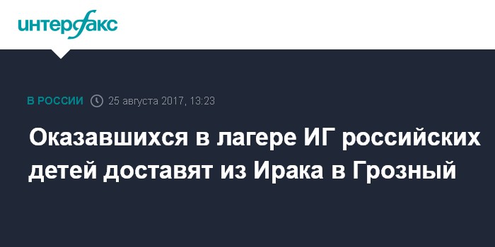 Москва. 25 августа. INTERFAX.RU - Пятеро российских детей спасены в Ираке из плена террористической организации "Исламское государство" (запрещена в РФ) и в ближайшее время будут доставлены на родину, сообщил глава Чечни Рамзан Кадыров.