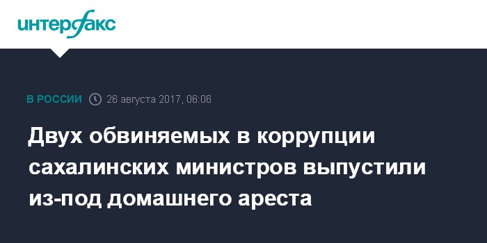 Двух обвиняемых в коррупции сахалинских министров выпустили из-под домашнего ареста