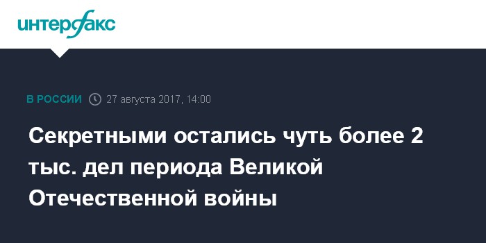 Москва. 27 августа. INTERFAX.RU - Центральный архив Минобороны России рассекретил почти все дела периода Великой Отечественной войны, секретными остаются около 0,02%, сообщила главный документовед архива по связям со СМИ Виктория Каяева.