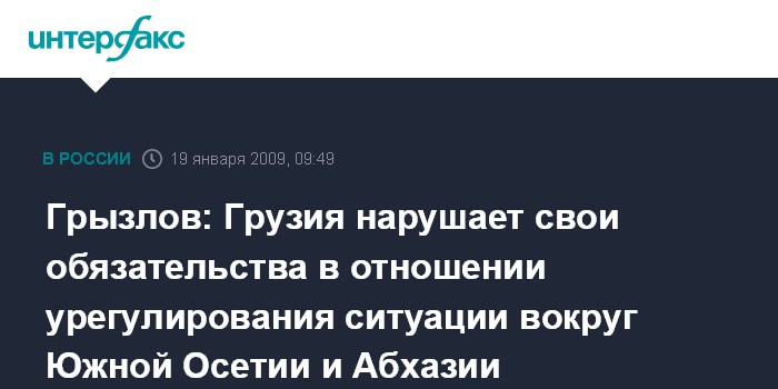 Грызлов: Грузия нарушает свои обязательства в отношении урегулирования ситуации вокруг Южной Осетии и Абхазии