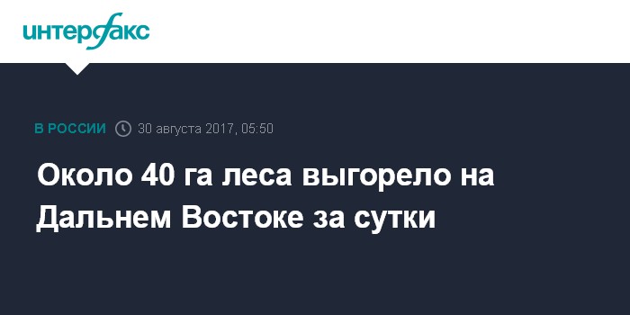Москва. 30 августа. INTERFAX.RU - Лесные службы на Дальнем Востоке тушили в минувшие сутки 19 пожаров, сообщает департамент лесного хозяйства по региону.