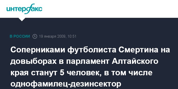 Соперниками футболиста Смертина на довыборах в парламент Алтайского края станут 5 человек, в том числе однофамилец-дезинсектор