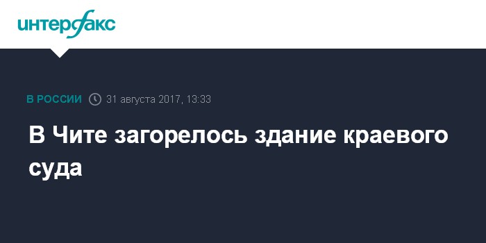 Москва. 31 августа. INTERFAX.RU - Пожарные тушат здание краевого суда в Чите. Об этом сообщила в четверг агентству "Интерфакс" пресс-секретарь суда Виктория Михайлюк.