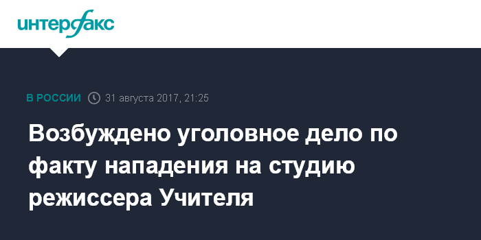Возбуждено уголовное дело по факту нападения на студию режиссера Учителя