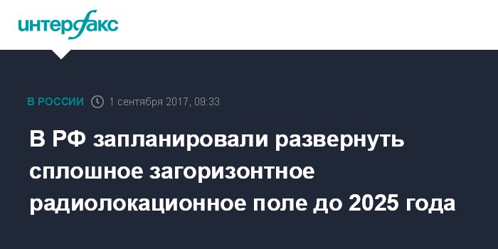 "Развертывание загоризонтного сплошного радиолокационного поля - на дальностях до 2 тысяч км за пределами РФ - это тоже важная стратегическая задача. Здесь нужно уточнить: ЗГО - это воздушные объекты, а СПРН работает по баллистическим целям и космическим объектам. Работы будут продолжены еще и в следующие годы, если мы говорим о ЗГО. По плану - до 2025 года", - сообщил Боев в интервью газете "Коммерсантъ".