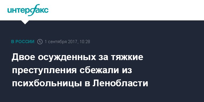 Москва. 1 сентября. INTERFAX.RU - Полиция разыскивает двоих осужденных, сбежавших в ночь на пятницу из Дружносельской психиатрической больницы в Ленинградской области.