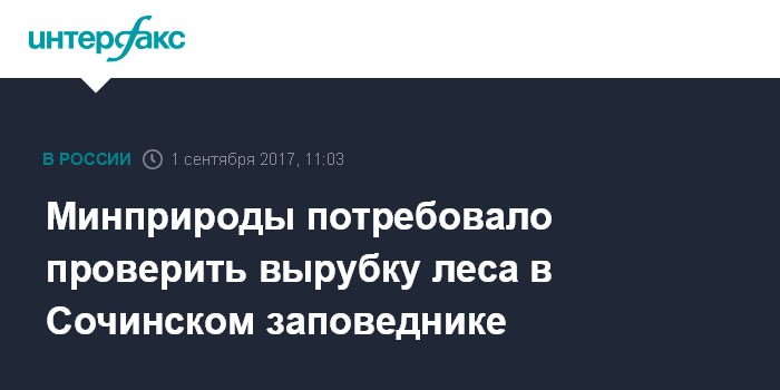 Москва. 1 сентября. INTERFAX.RU - Министерство природных ресурсов и экологии РФ попросило Генпрокуратуру проверить рубки леса в Сочинском национальном парке, сообщила пресс-служба министерства.