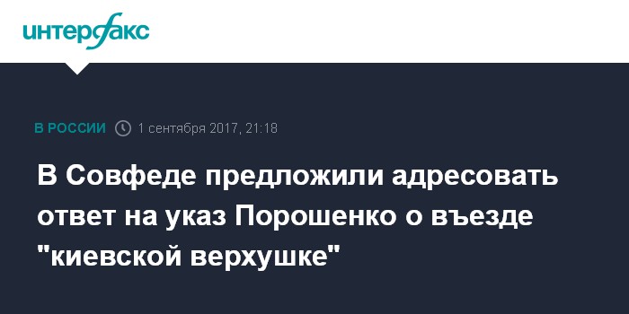 В Совфеде предложили адресовать ответ на указ Порошенко о въезде "киевской верхушке"