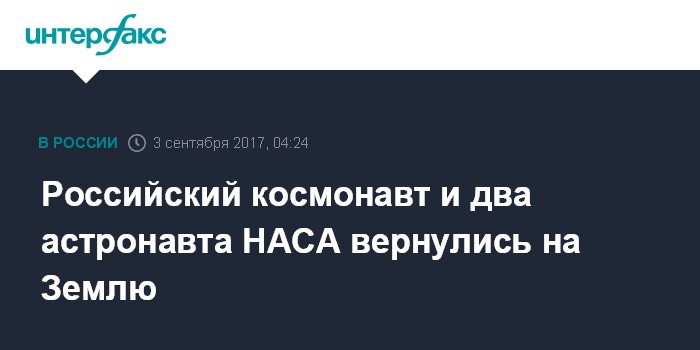 Москва. 3 сентября. INTERFAX.RU - Спускаемый аппарат космического корабля "Союз МС-04" с российским космонавтом и двумя астронавтами НАСА вернулся с Международной космической станции (МКС) на Землю ночью в воскресенье.