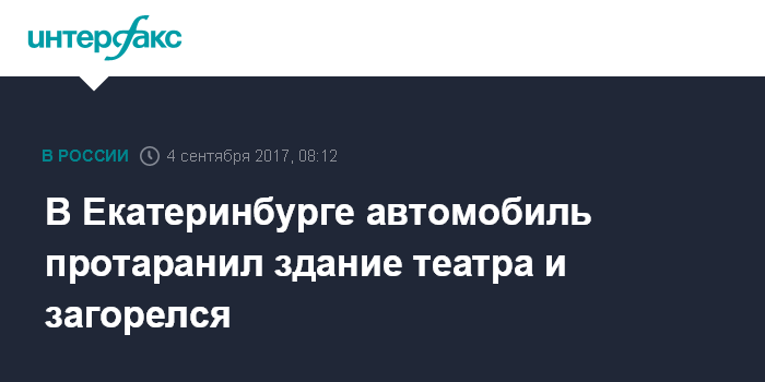 В Екатеринбурге автомобиль протаранил здание театра и загорелся