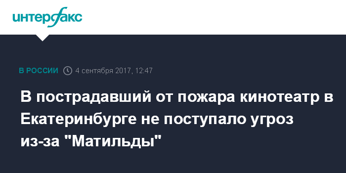 В пострадавший от пожара кинотеатр в Екатеринбурге не поступало угроз из-за "Матильды"