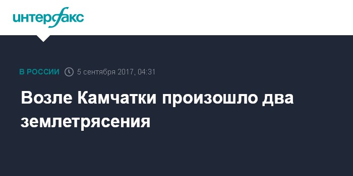 Москва. 5 сентября. INTERFAX.RU - Два землетрясения зарегистрированы минувшей ночью возле Камчатки, сообщили агентству "Интерфакс" на сейсмостанции "Петропавловск".