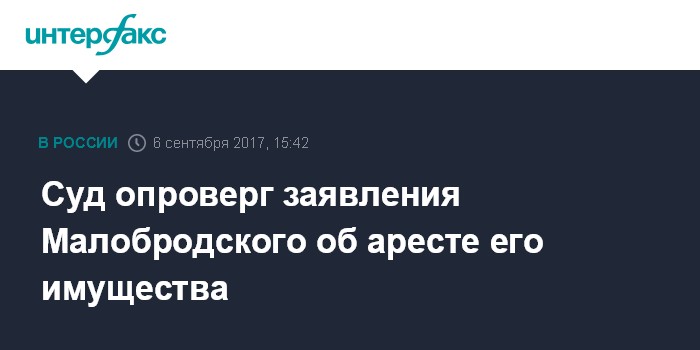 "Басманным судом не накладывался арест на имущество Малобродского и членов его семьи. В рамках данного уголовного дела вообще не накладывался арест нашим судом на чье-либо имущество", - сказала Интерфаксу пресс-секретарь суда Юнона Царева.