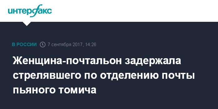 Москва. 7 сентября. INTERFAX.RU - Житель Томска в четверг открыл стрельбу по почтовому отделению связи N55, расположенному в микрорайоне Академгородок на восточной окраине города, его удалось задержать благодаря действиям сотрудницы почты и прохожих, сообщает пресс-служба томского филиала "Почты России".