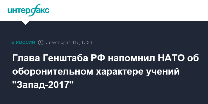 Глава Генштаба РФ напомнил НАТО об оборонительном характере учений "Запад-2017"