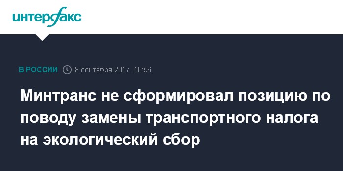 "Работа проводится в соответствии с Транспортной стратегией РФ на период до 2030 года. Этот документ предусматривает снижение энергоемкости транспорта и более широкое применение экономичных транспортных средств. (...) По словам источника в руководстве Минтранса, обсуждаемый экологический налог в отличие от действующего транспортного не предусматривает региональной дифференциации", - говорилось в публикации.