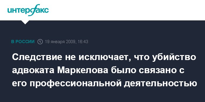 "Следствие изучает различные версии убийства Маркелова, в том числе - версию, связанную с профессиональной деятельностью адвоката", - отметил Багмет.