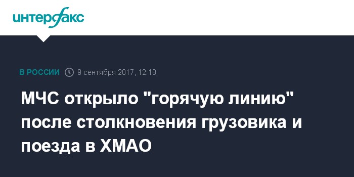 Москва. 9 сентября. INTERFAX.RU - Телефон "горячей линии" для родственников пострадавших пассажиров поезда "Адлер - Нижневартовск", который столкнулся с грузовиком в ХМАО, открыт в региональном ГУ МЧС.