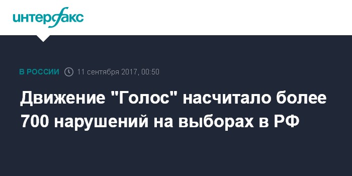 Москва. 11 сентября. INTERFAX.RU - "Голос" зафиксировал более 700 нарушений на выборах в Единый день голосования, в тройке лидеров по нарушениям Москва, Саратовская область и Краснодарский край, сообщил "Интерфаксу" сопредседатель движения Григорий Мельконьянц в понедельник.