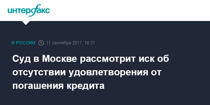 Суд в Москве рассмотрит иск об отсутствии удовлетворения от погашения кредита