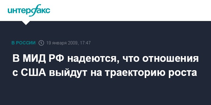 Москва. 19 января. INTERFAX.RU - В Москве рассчитывают, что новая администрация США откроет "окно возможностей" для перезапуска российско-американских отношений, вывода их на траекторию роста после прошлогоднего периода "избыточной турбулентности", заявил замглавы МИД РФ Сергей Рябков.
