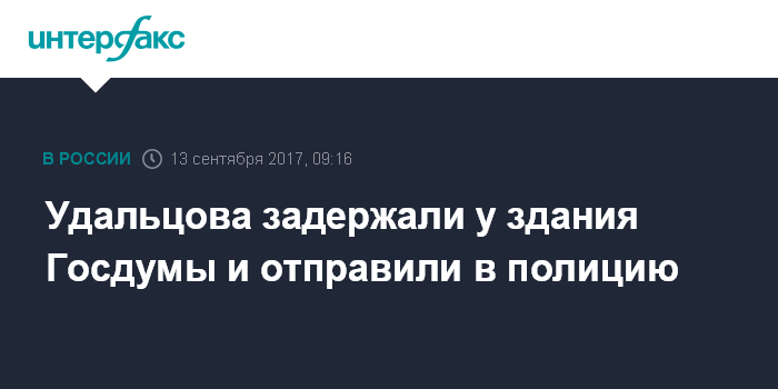 Москва. 13 сентября. INTERFAX.RU - Координатор "Левого фронта" Сергей Удальцов задержан в ходе одиночного пикета у здания Госдумы, сообщила его жена Анастасия Удальцова.